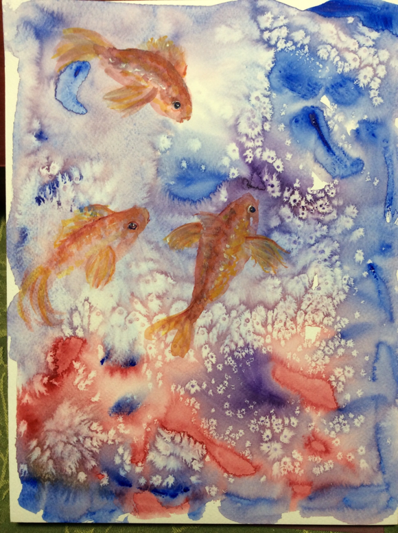 ReplyDeleteOoh, those fish! Such "watery" watercolor, I love it!