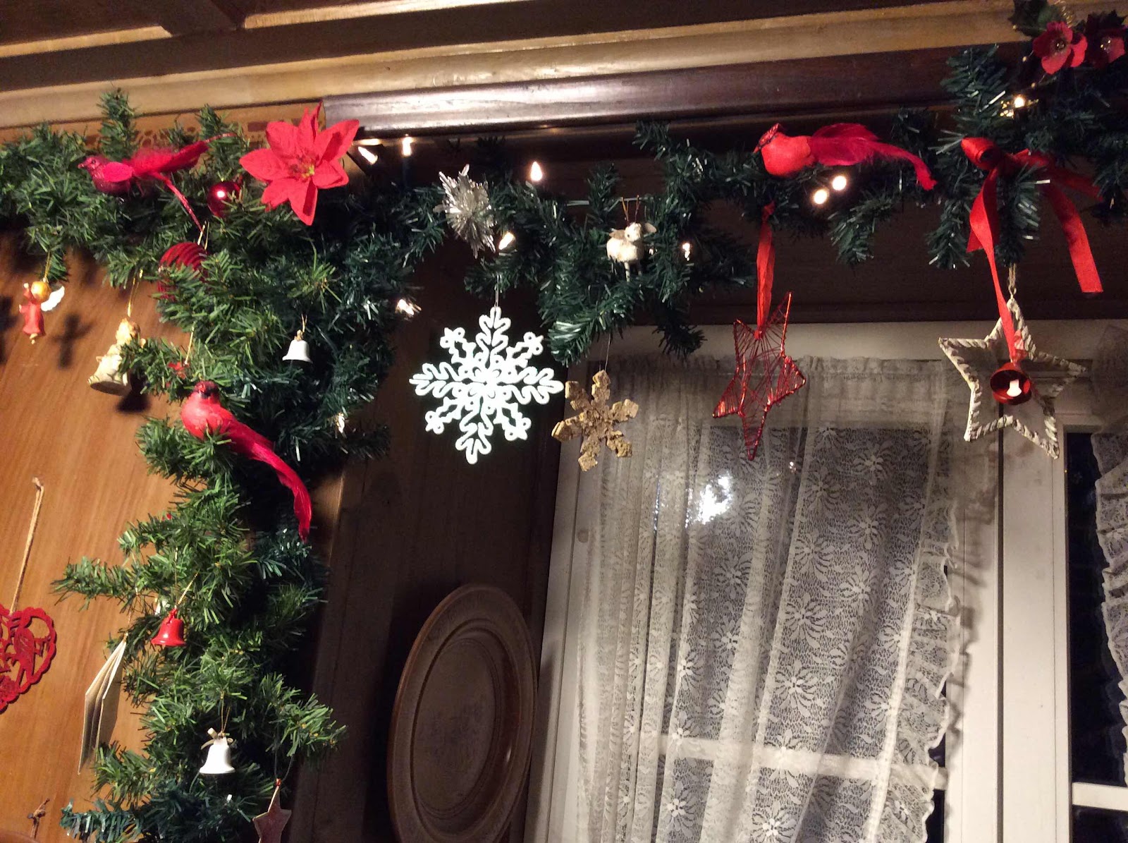 So, up go the garlands and lights and cheery little figures. And the crèche awaiting the arrival of the Christ Child.