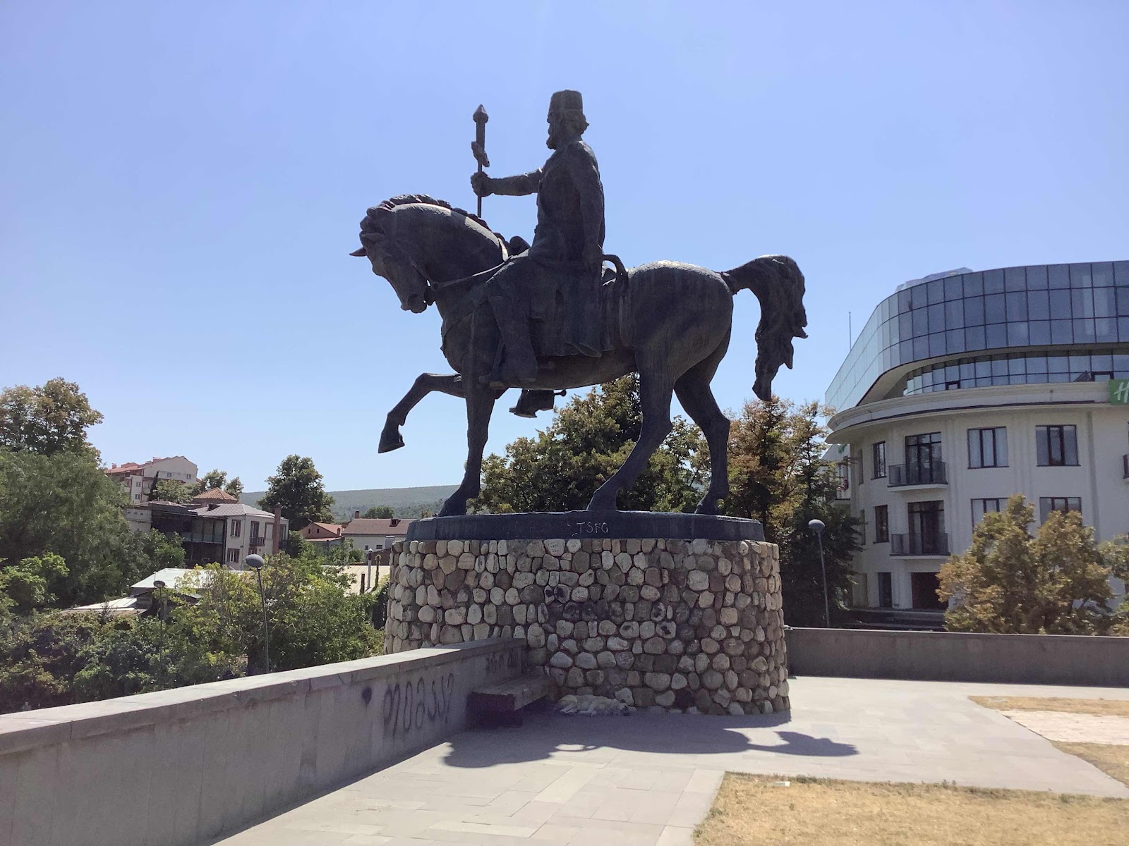 Historical scene of Queen Tamar (caption said “king,” but she looks female to me, and history says she was).