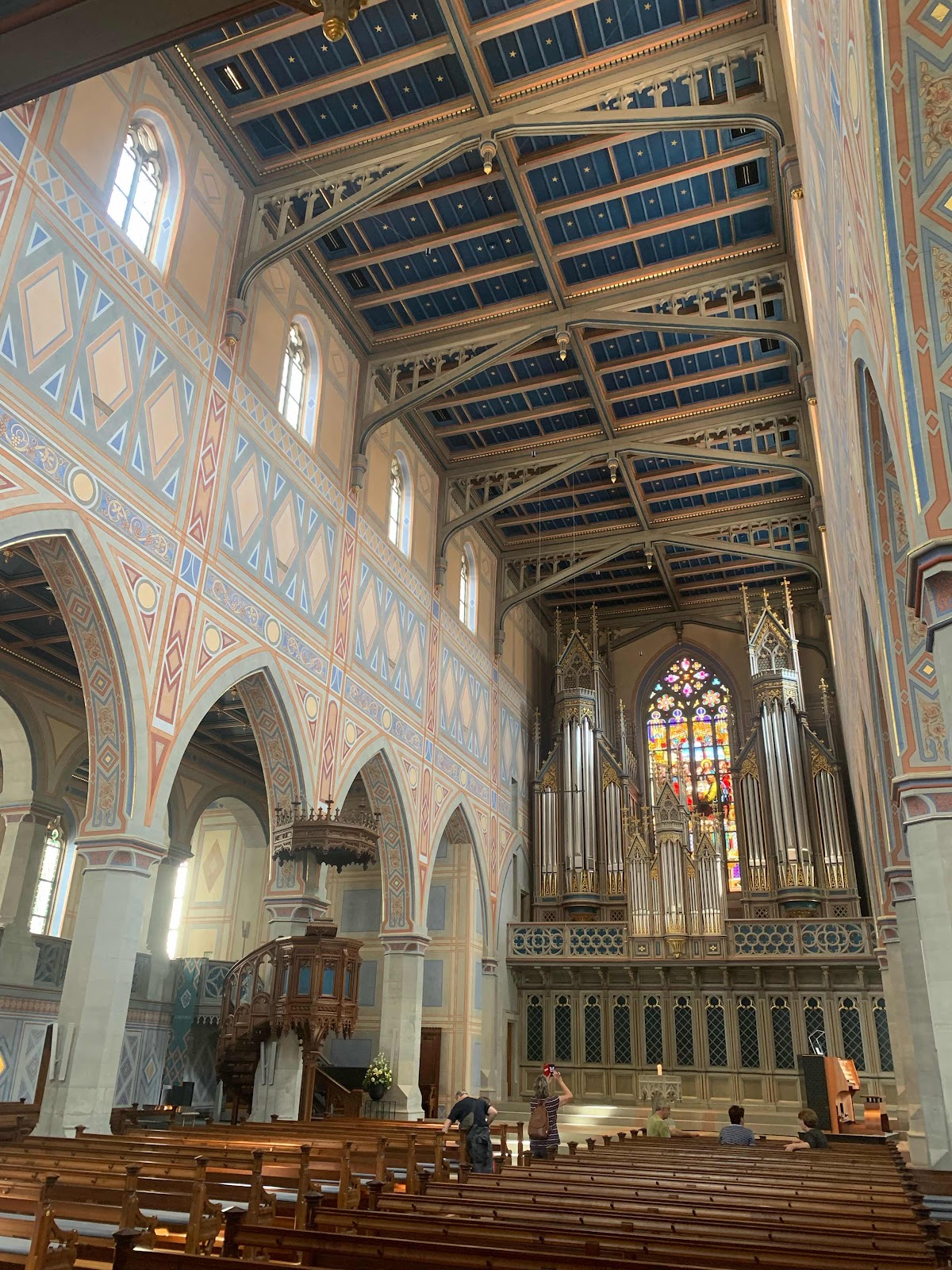 On his way home from a mission trip in Sri Lanka, my brother stopped to see us and give a report on his trip. On one of the days we took a little excursion into St. Gallen to show him some highlights. He had damaged feet, so extensive walking was not an option. But we did look into the city church and the Abbey Cathedral and some picturesque streets, and the chocolate shop. And dinner at the old post house.
