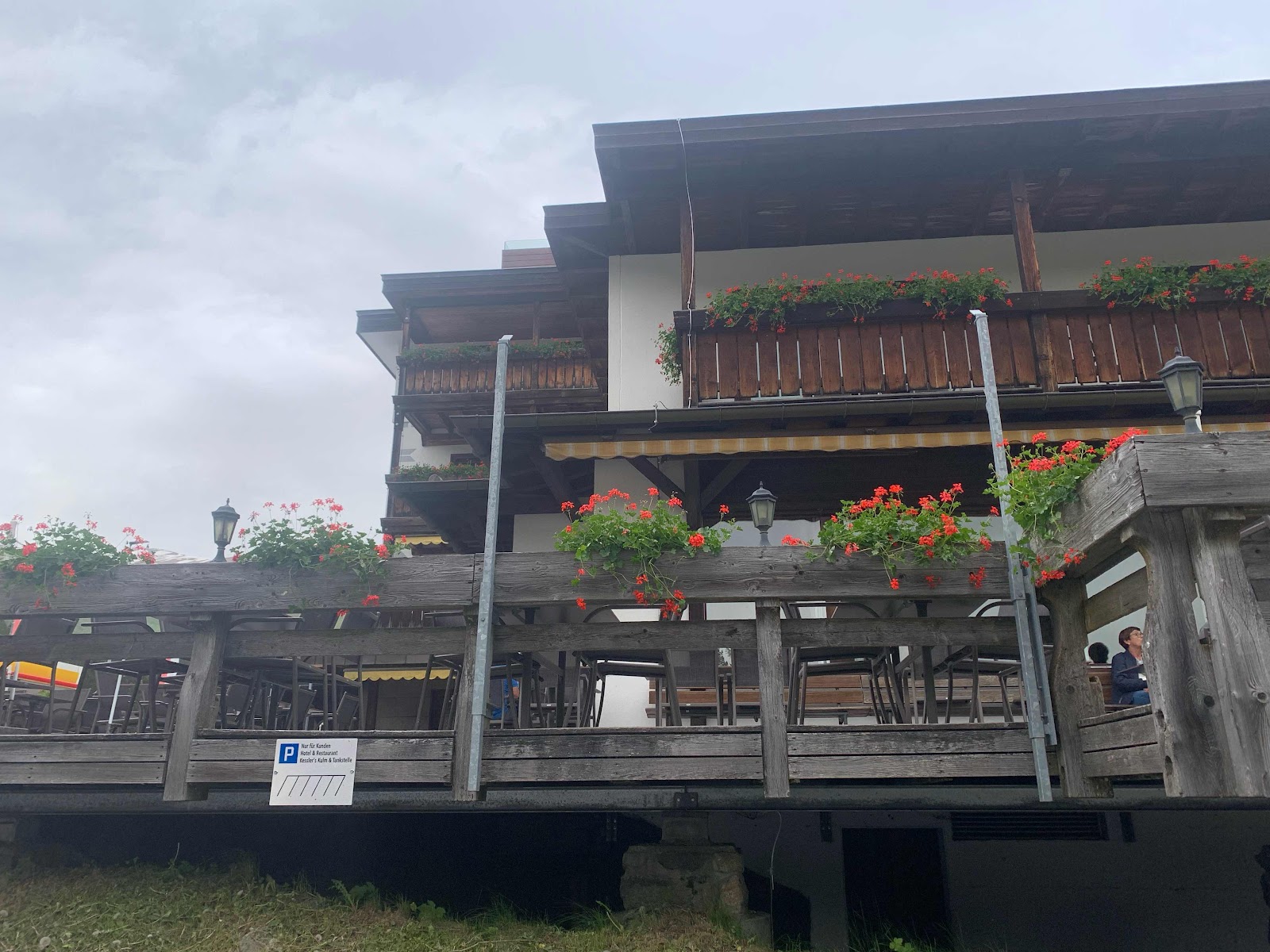 Yesterday we went to Davos (yes, THAT Davos, but not presently infested) to visit and take some things to a brother(-in-law). He is recuperating from a serious medical incident in what he affirms is “the best rehab facility in Switzerland,” which is quite a rank in a country renowned for its “wellness” facilities. This one is up a winding mountain road high above the town in a beautiful setting. I think the setting is what makes people recover. He is ambulatory now, so we went to a restaurant for a fine al fresco dinner.