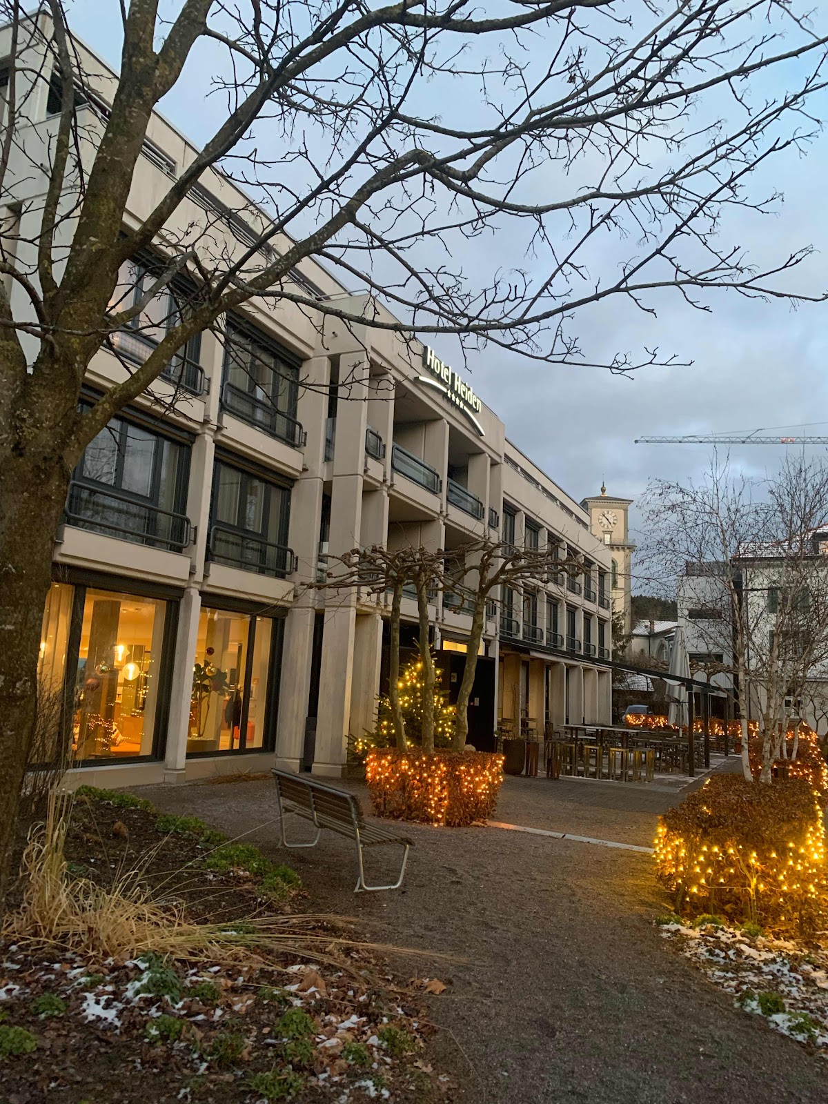 We did a little “Lantern Walk” in our local sort-of-bigger town of Heiden. The description was appealing, but if anyone has been to or would expect something American, he would be disappointed. Those have innumerable colored lights, enough illumination to look like daytime, and nervous energy everywhere. This was actually and literally a lantern walk: the path had jars of battery-powered light strings at intervals along the walking path. Punctuating the way were handmade decorations of angels or Wichtels or trees, mostly unlit or faintly lit. But it was a pleasant walk and many people obviously came to do the stroll.