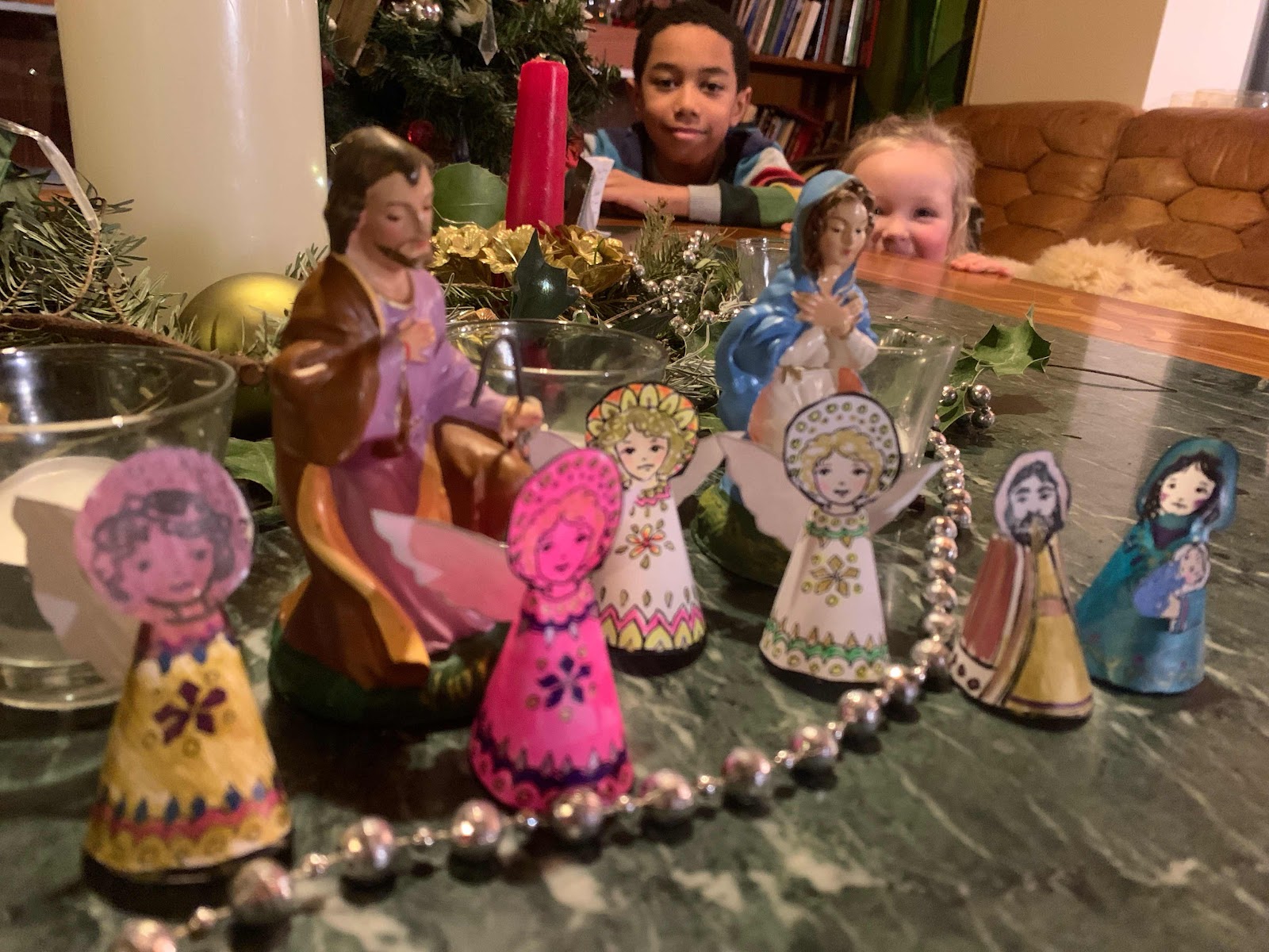 Today was Oma time. We put out decorations, read stories, cooked, baked cookies, and made Christmas figures in bright colors.