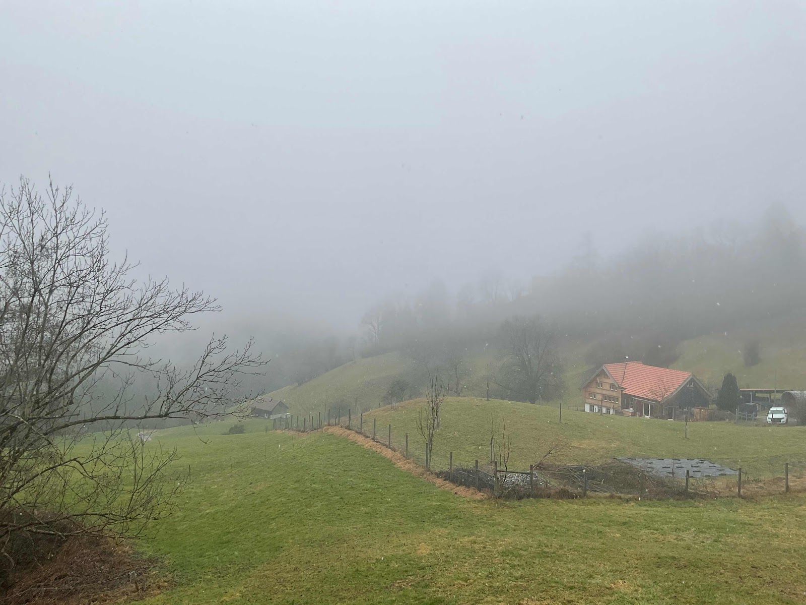 With a sprinkle of snow, and drippy wet.