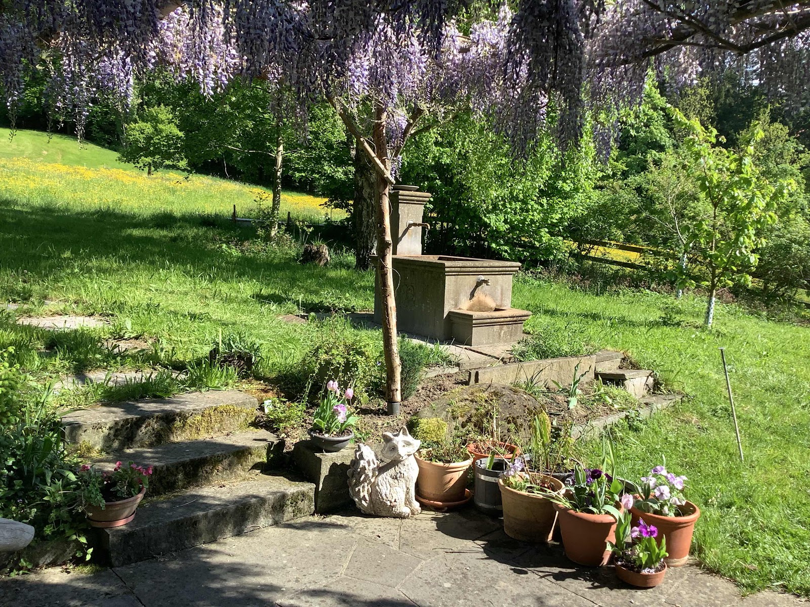 In the meantime, I got a few more flower pots worked on. And this year we will have a couple of window boxes. They will be by our Sitzplatz. Right now it is still wafting wisteria scent. Heavenly.